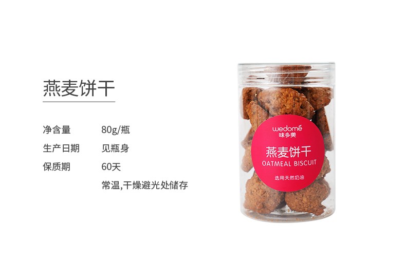 商品名称:味多美 燕麦饼干 零食饼干早餐下午茶小吃休闲食品 罐装/ 80g