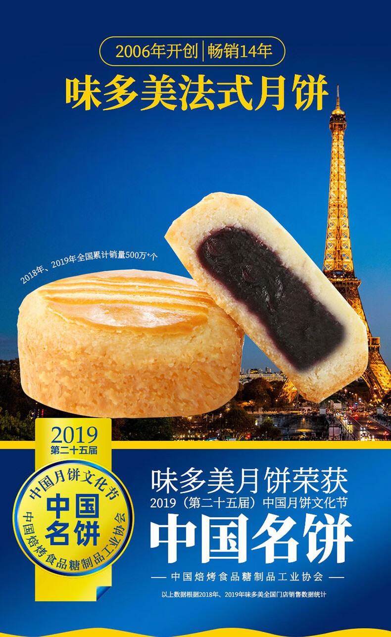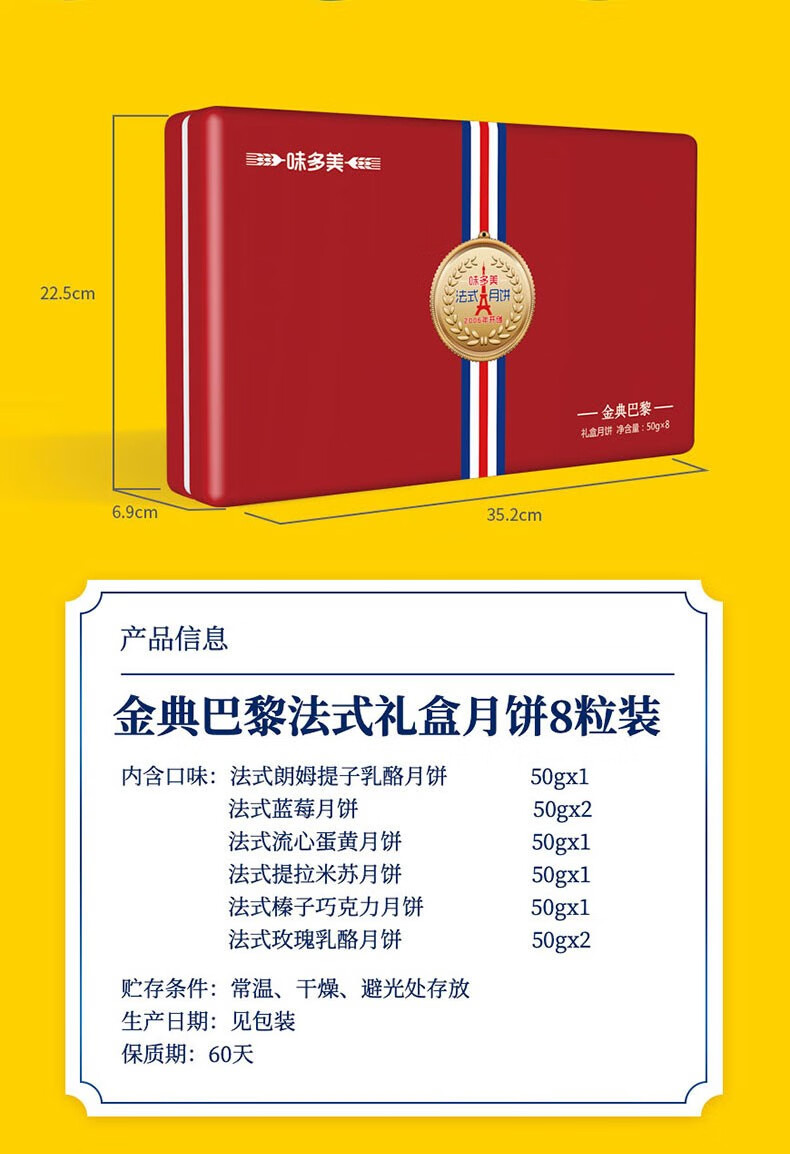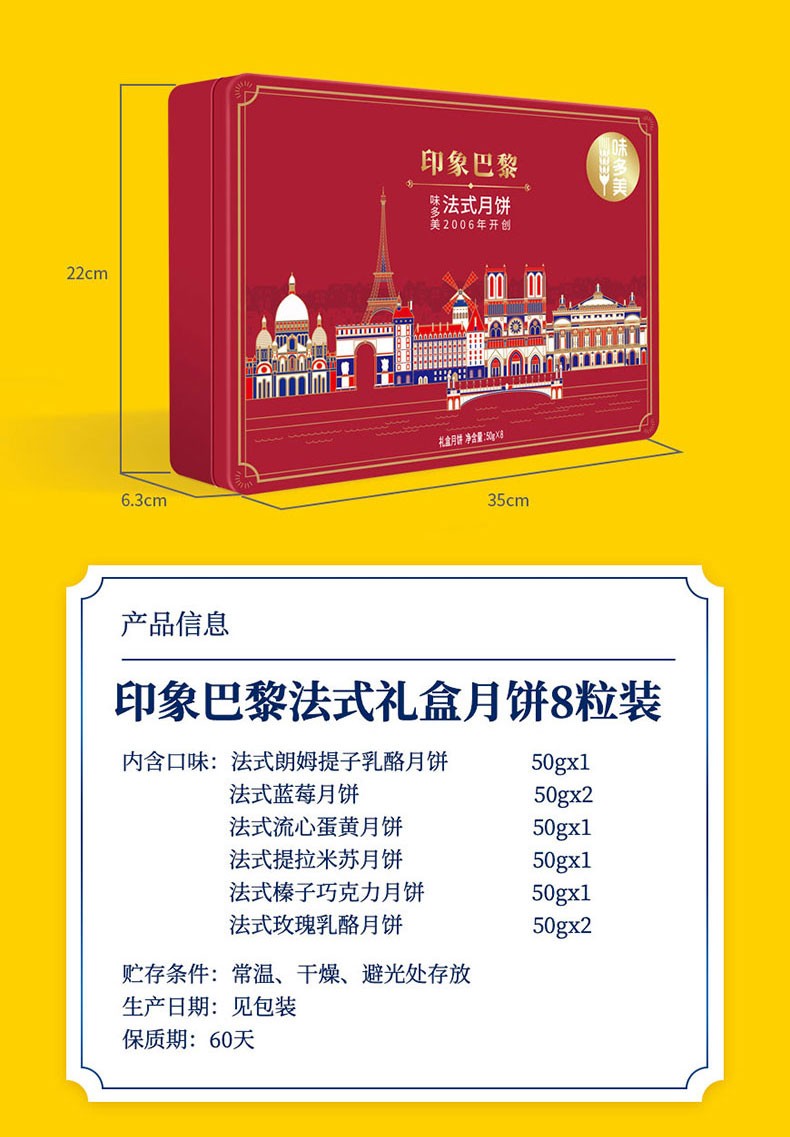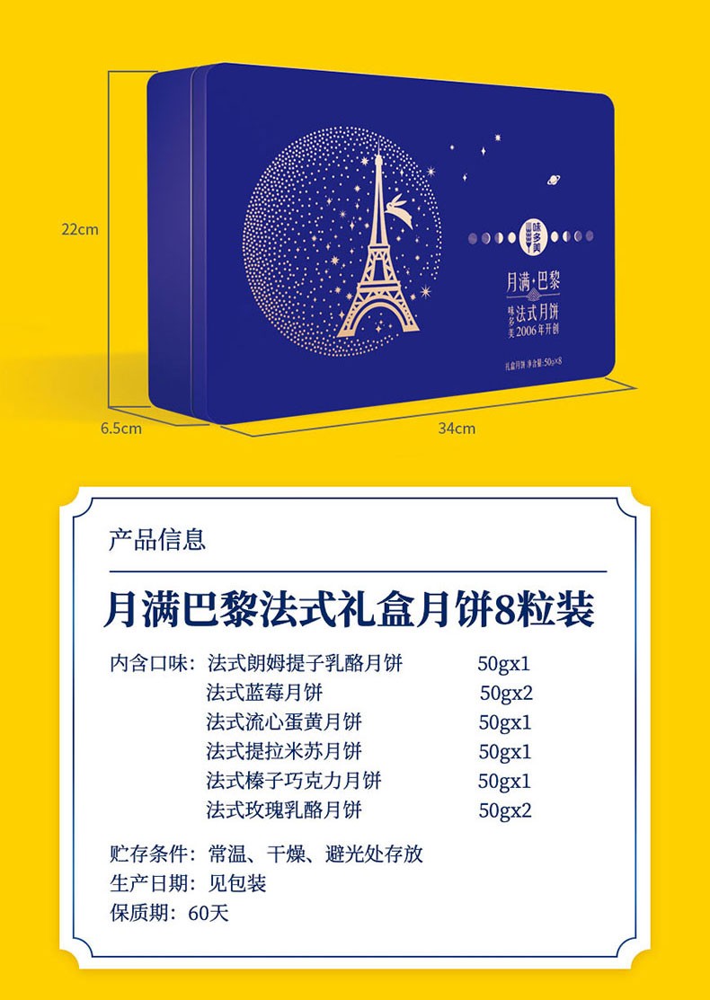 商品名称:味多美 中秋月饼礼盒 法式月饼 多口味 8粒装 金典巴黎 法式礼盒月饼