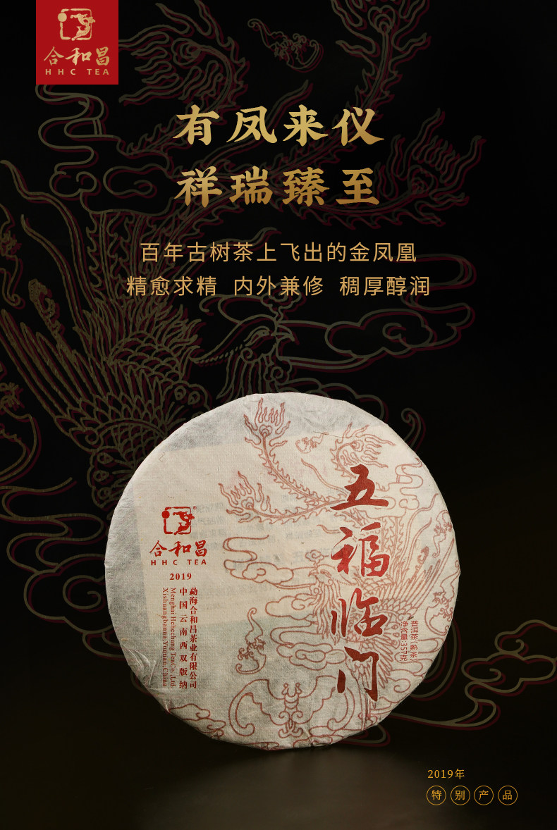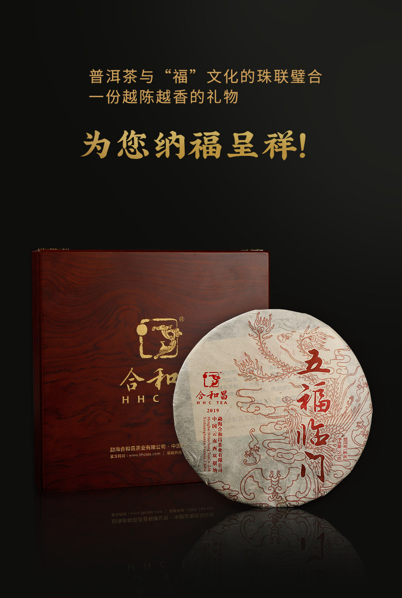 商品名称:合和昌2019五福临门普洱茶熟茶礼盒装饼茶357g布朗古树茶珍藏送礼