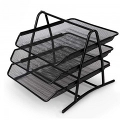 得力(deli)-9181-商务三层金属文件盘-桌面收纳-文件架/资料架/文件篮-托盘可前后移动-黑色-单位:个