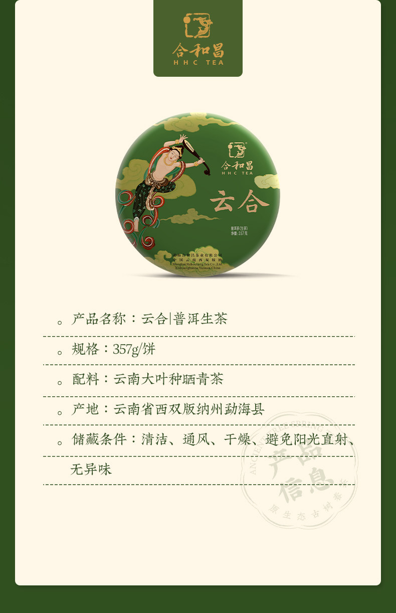 商品名称:合和昌 2020年云合 普洱茶生茶礼盒装饼茶357g勐海布朗生态乔木茶