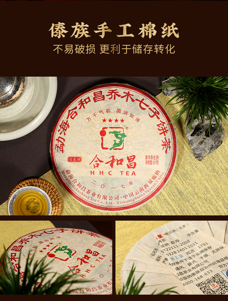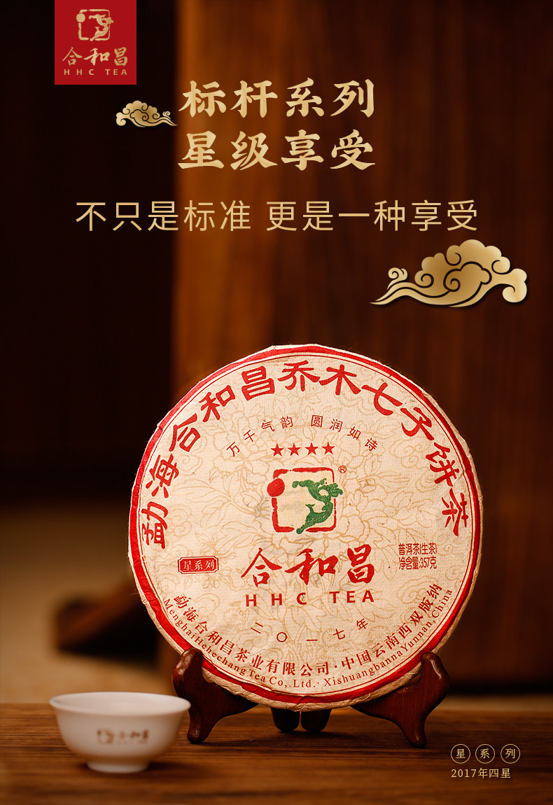 商品名称:2017年合和昌四星 品牌标杆系列普洱茶生茶 布朗乔木七子饼茶357g