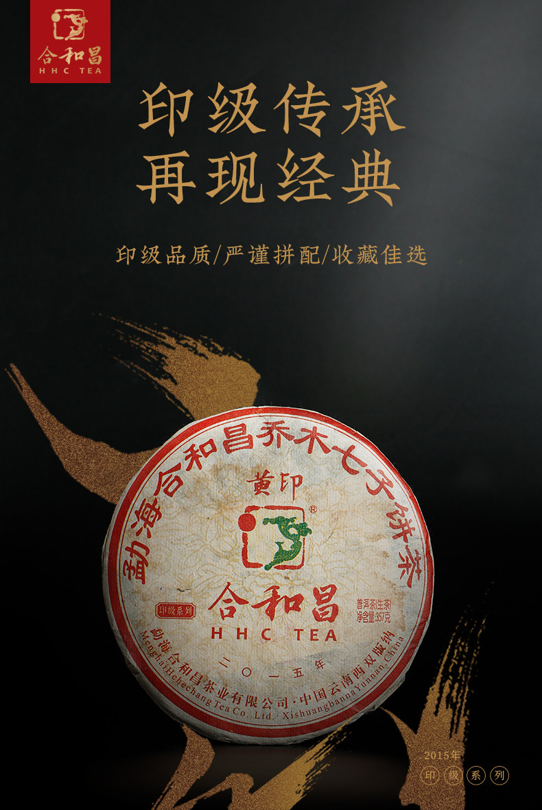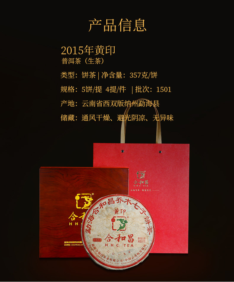 商品名称:【5年陈印级生茶】合和昌2015黄印普洱茶357g饼茶 布朗头春古树茶