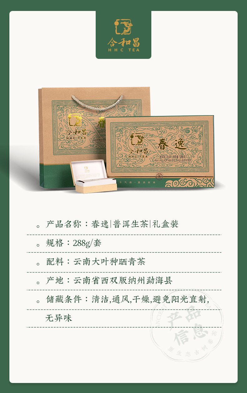 商品名称:合和昌2020年春逸普洱茶生茶迷你小砖茶288g礼盒装布朗生态乔木茶