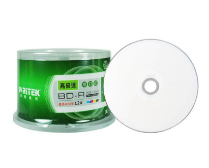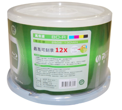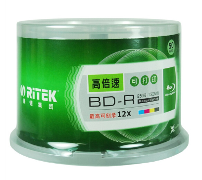 铼德(Ritek) BD-R 高倍数可达12速 25G 蓝光可打印 桶装50片 刻录盘