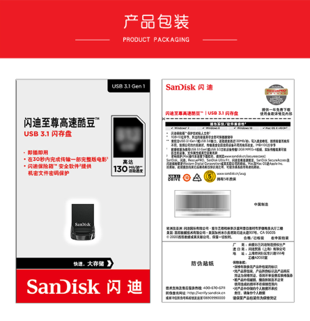 商品名称:闪迪 SANDISK 至尊高速酷豆 SDCZ430-016G-Z46 U盘 16GB USB3.1 读速130MB/S 黑色