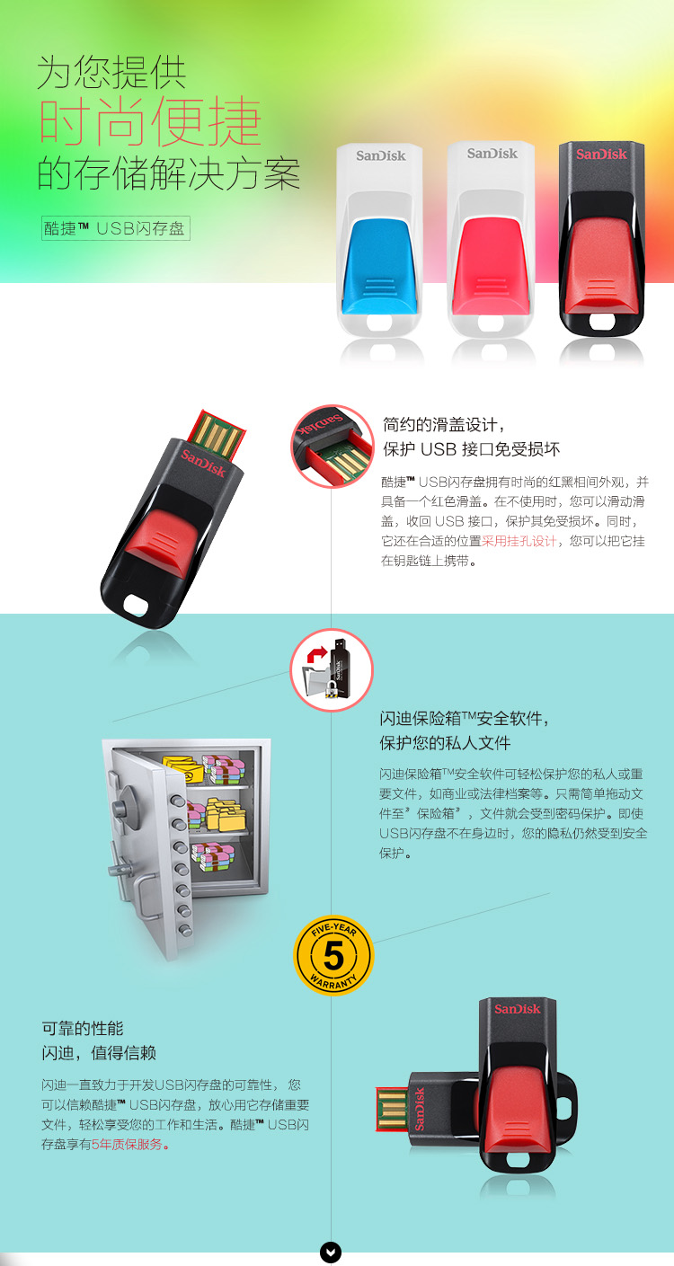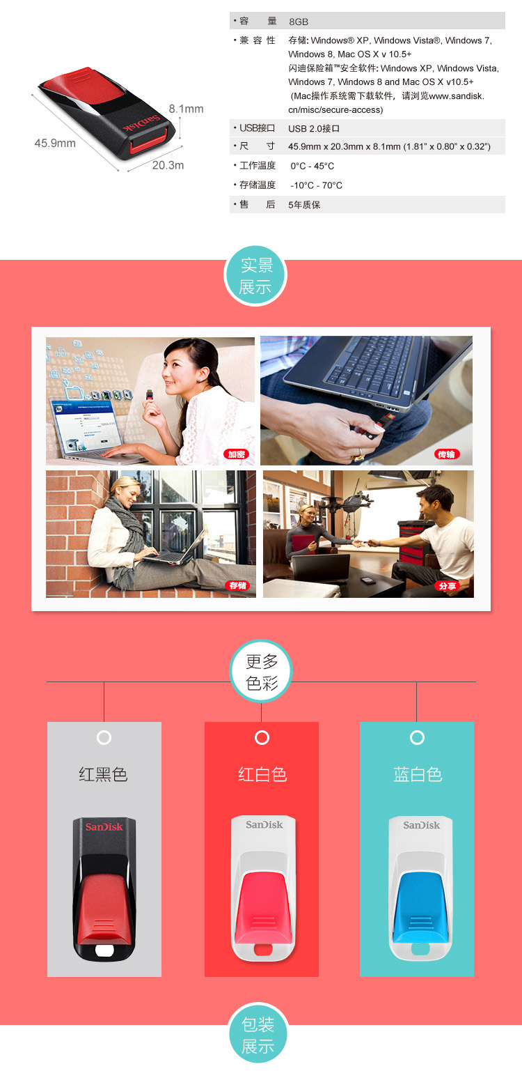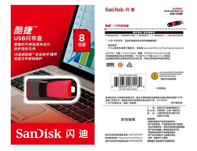 商品名称:闪迪 SANDISK 酷捷 CZ51 8GB U盘 黑红