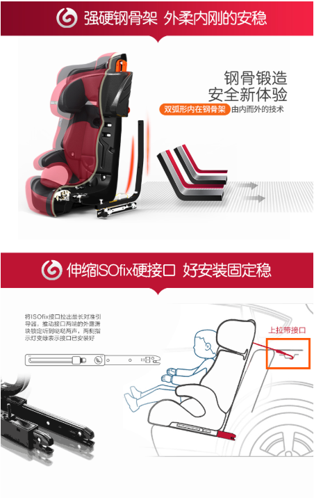 商品名称:感恩 GANEN 宝宝汽车儿童安全座椅 阿瑞斯 钢骨架汽车座椅ISOFIX硬接口 9个月-12岁 雨晶蓝
