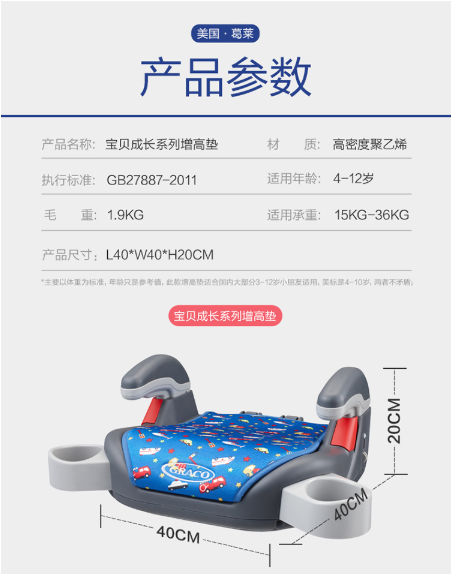 商品名称:葛莱 GRACO 儿童汽车安全座椅增高垫4-12岁8E93NORN