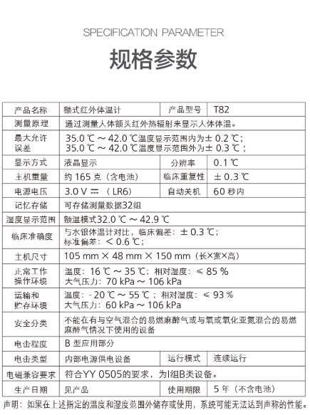 商品名称:松下 PANASONIC T82 红外线电子体温计