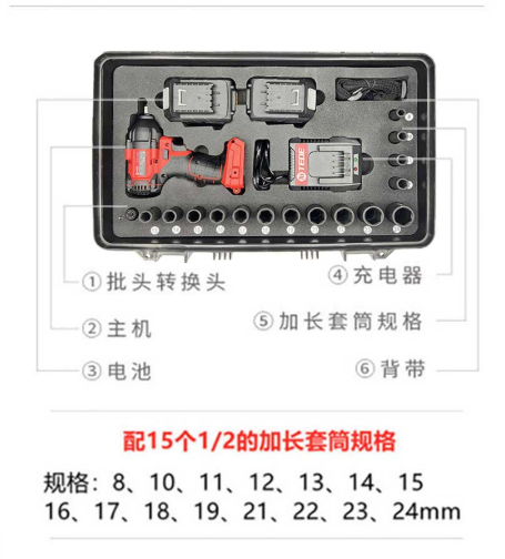 TEDE YD-5589 无刷充电式锂电电动扳手1/2英寸16件组套(两电一充)(计价单位:套)