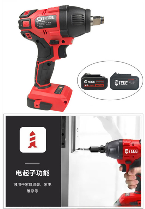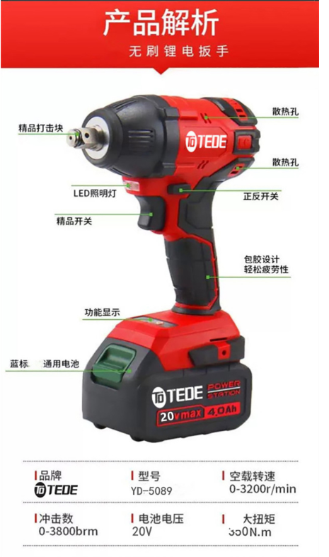 商品名称:TEDE YD-5089 无刷充电式锂电电动扳手1/2英寸组套(两电一充)(计价单位:套)