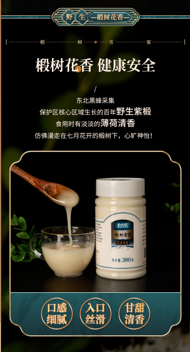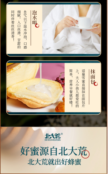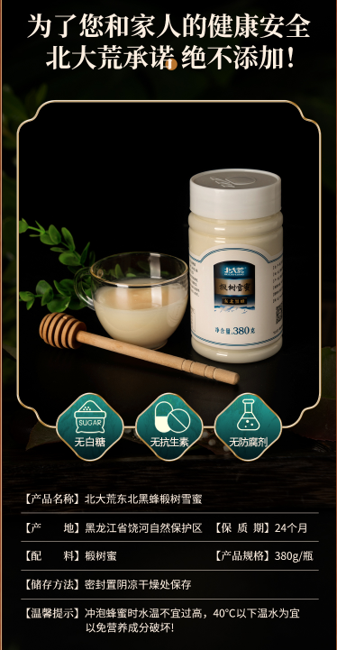商品名称:北大荒 东北黑蜂 椴树雪蜜 纯蜂蜜380G