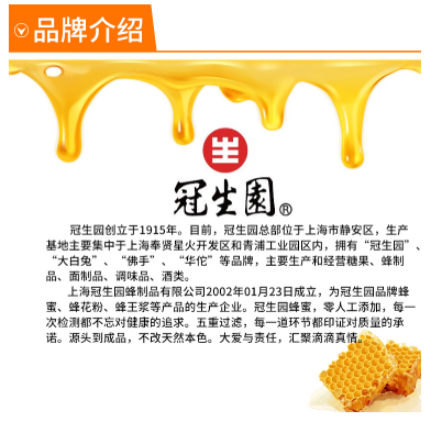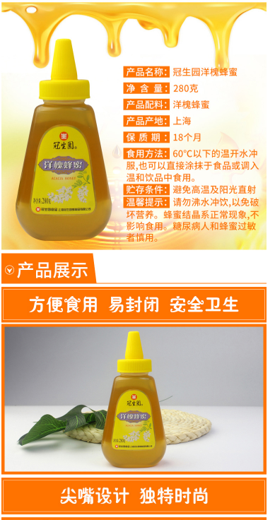 商品名称:冠生园 洋槐蜂蜜蜂制品280G/瓶