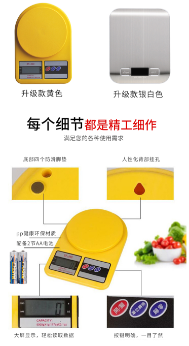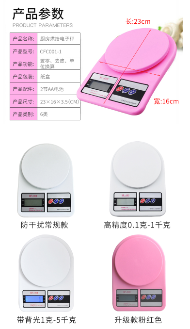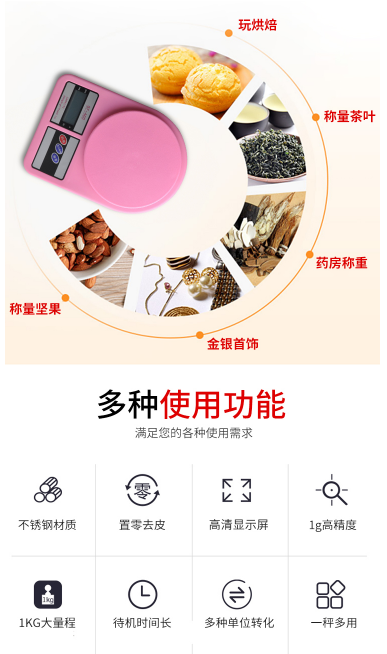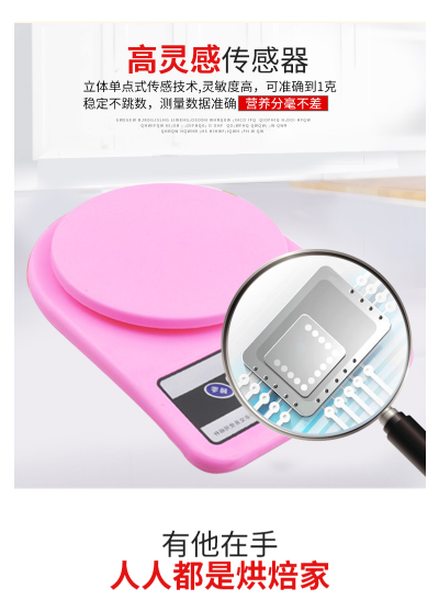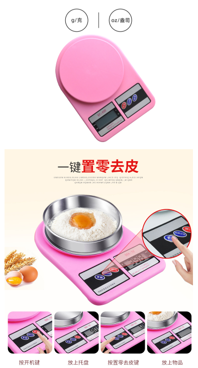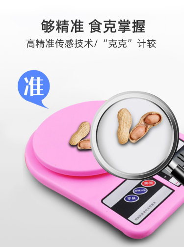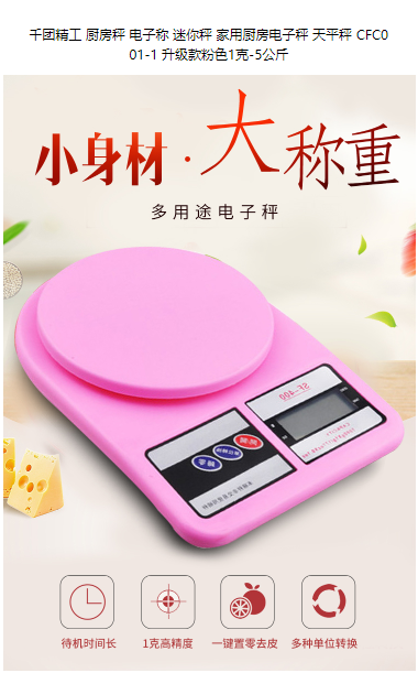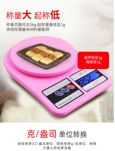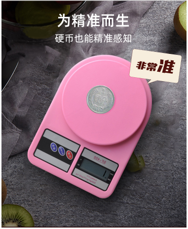商品名称:千团精工 厨房秤电子称迷你秤家用厨房电子秤天平秤CFC001-1升级款粉色1克-5公斤