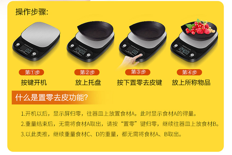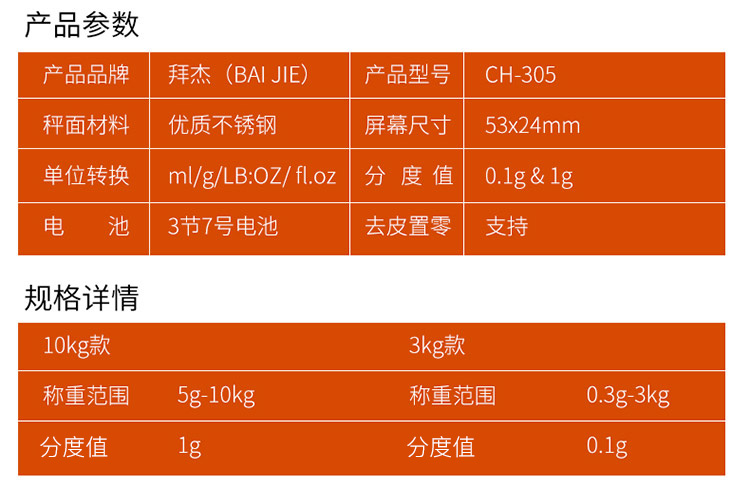 商品名称:拜杰 BAIJIE CH-305 厨房电子秤 10KG 银色