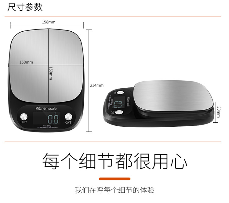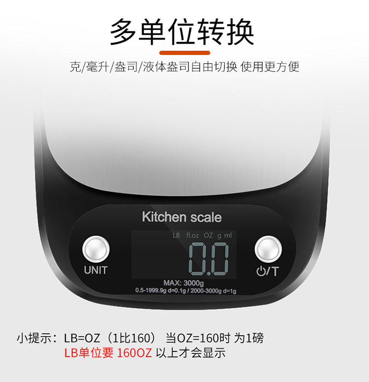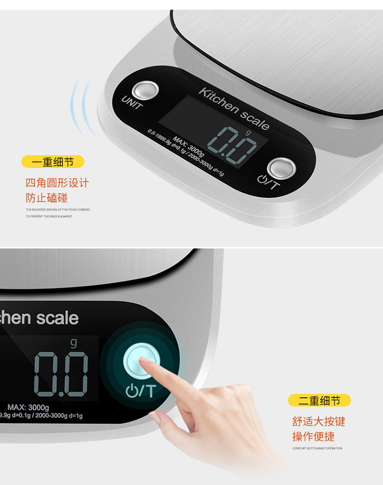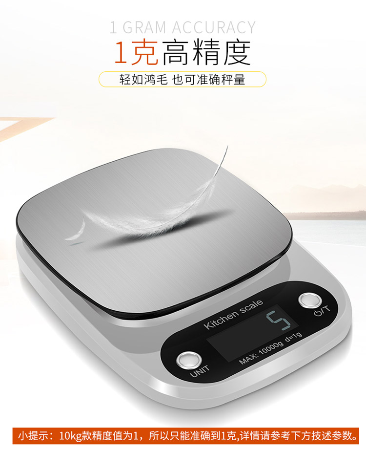 拜杰 BAIJIE CH-305 厨房电子秤 10KG 银色