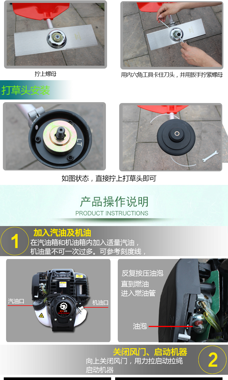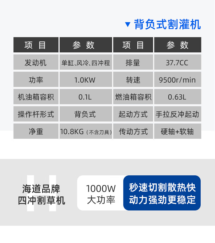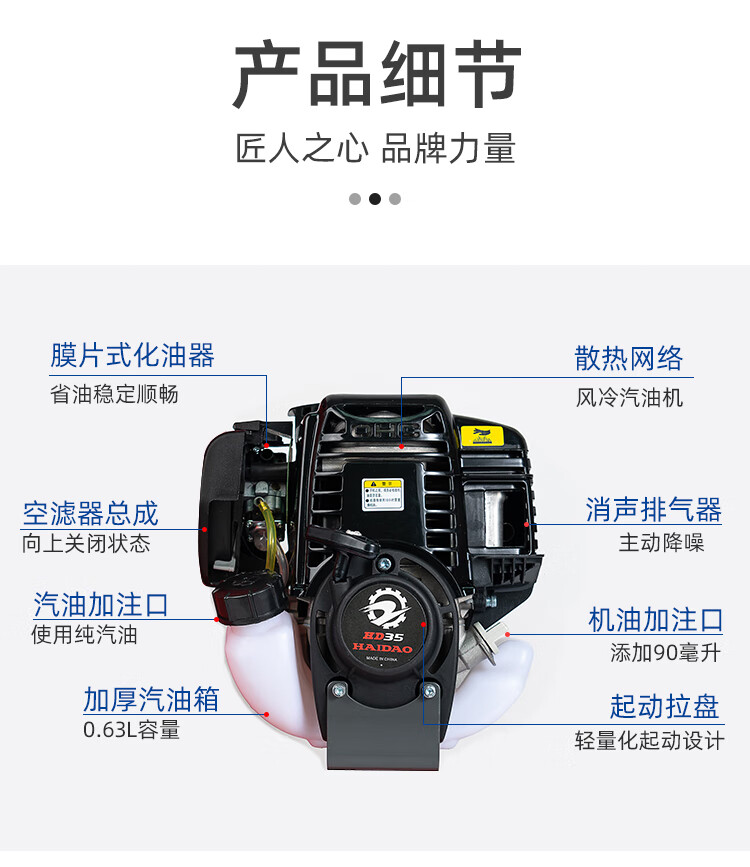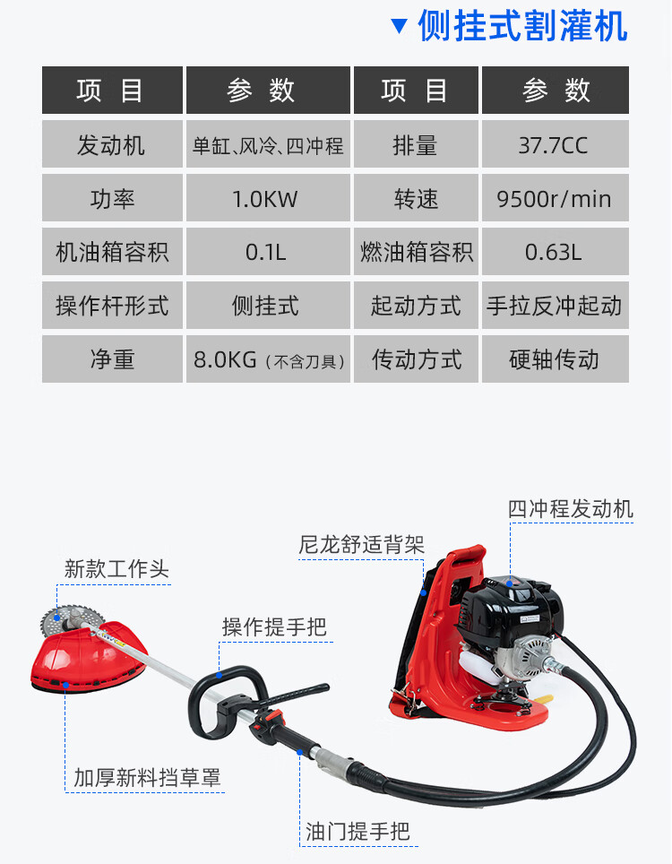 商品名称:海道 HD35 侧挂式动力四冲程汽油机割草机