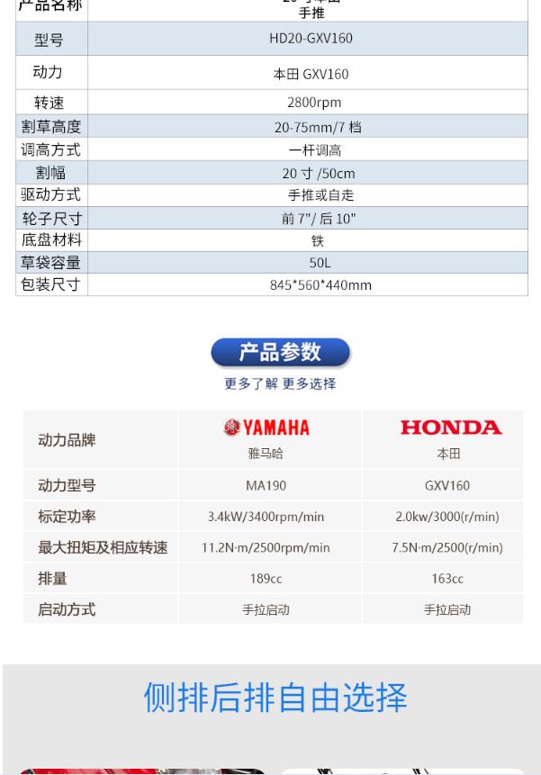 商品名称:海道 GXV160 割草机 动力手推 20寸
