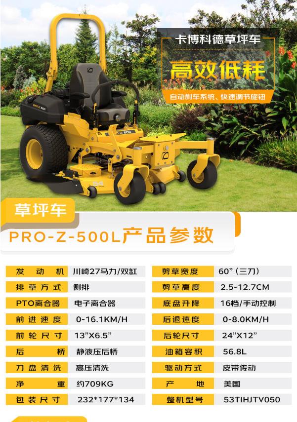 商品名称:卡博科德 CUB CADET PRO-Z-500L 零转弯草坪 坐式剪草车
