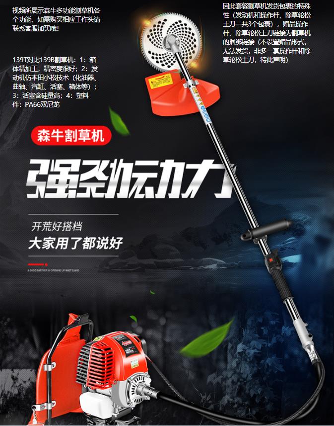 商品名称:森牛 SENNIU 139T 四冲程背负式割草机 除草轮+松土刀+高枝锯 除草机