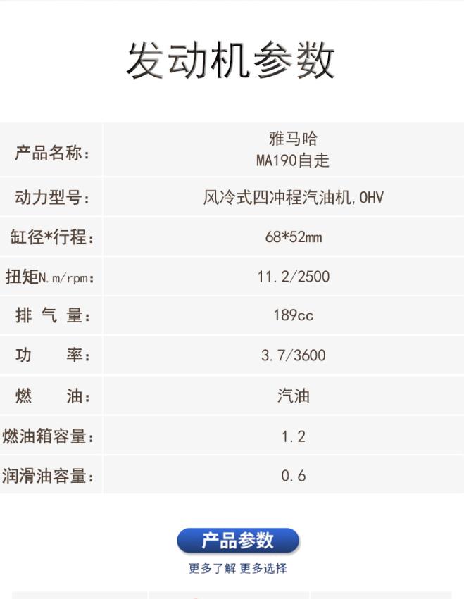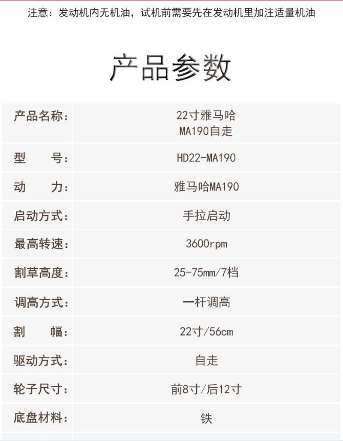商品名称:海道 雅马哈MA190动力 自走式四冲程割草机 22寸