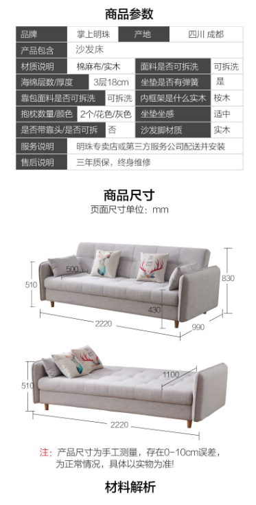商品名称:掌上明珠家居 M&Z ESC552 简约布艺沙发 222X99X83