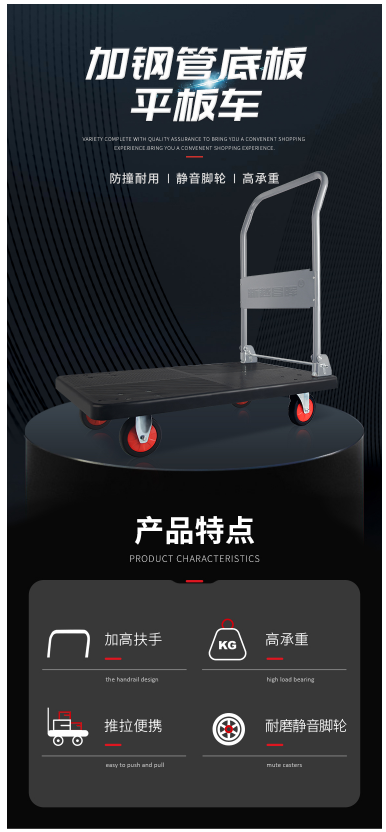 型号:平板车小推车货车静音搬运车手推车小拖车货73*47承重约300斤护角防撞
