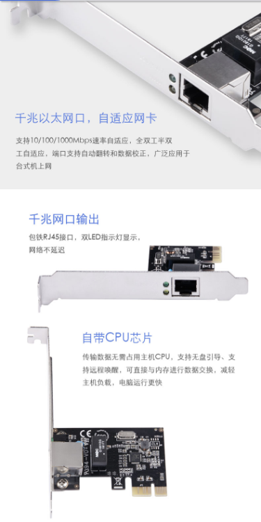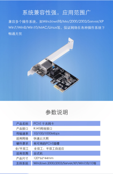 商品名称:魔羯 MOGE PCIEX1千兆网卡 MC2246 百兆/千兆自适应 台式机网卡扩展卡