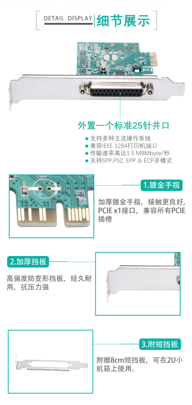 商品名称:魔羯 MOGE PCIEX1并口卡 MC2326 台式机IEEE1284扩展卡 LPT打印机接口
