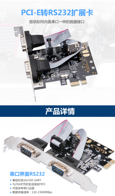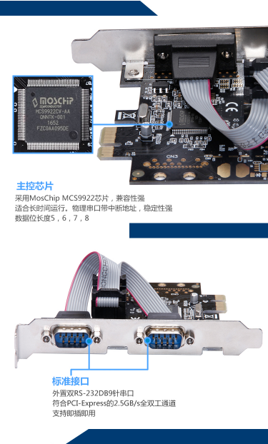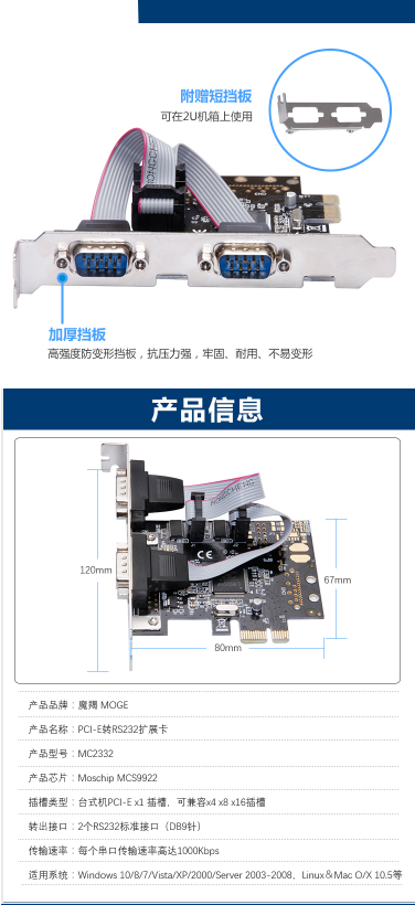 商品名称:魔羯 MOGE PCIEX1转2串口卡 MC2332 MOSCHIP芯片 COM口转接卡