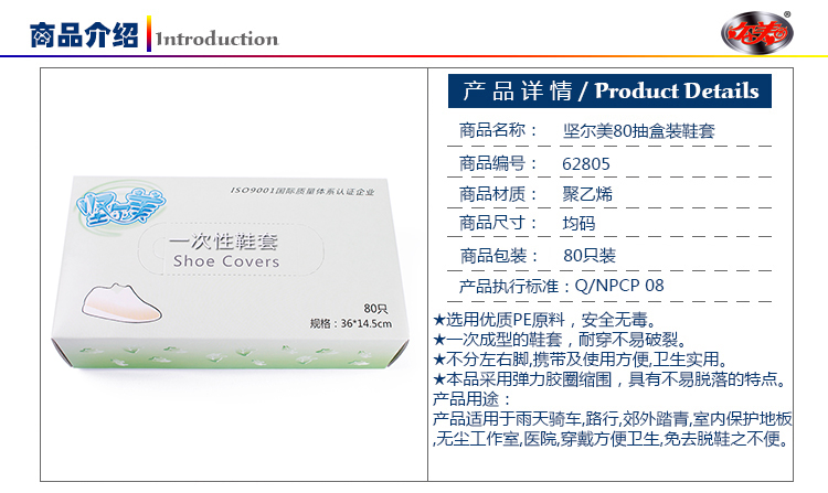 商品名称:坚尔美 62805 一次性鞋套 均码 80只/盒 蓝色
