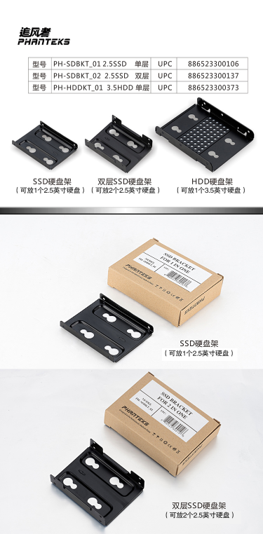 商品名称:追风者 PHANTEKS SDBKT-02 双层2.5英寸SSD支架(兼容2个SSD/适用215/813/916/普力魔P66){专用慎购}