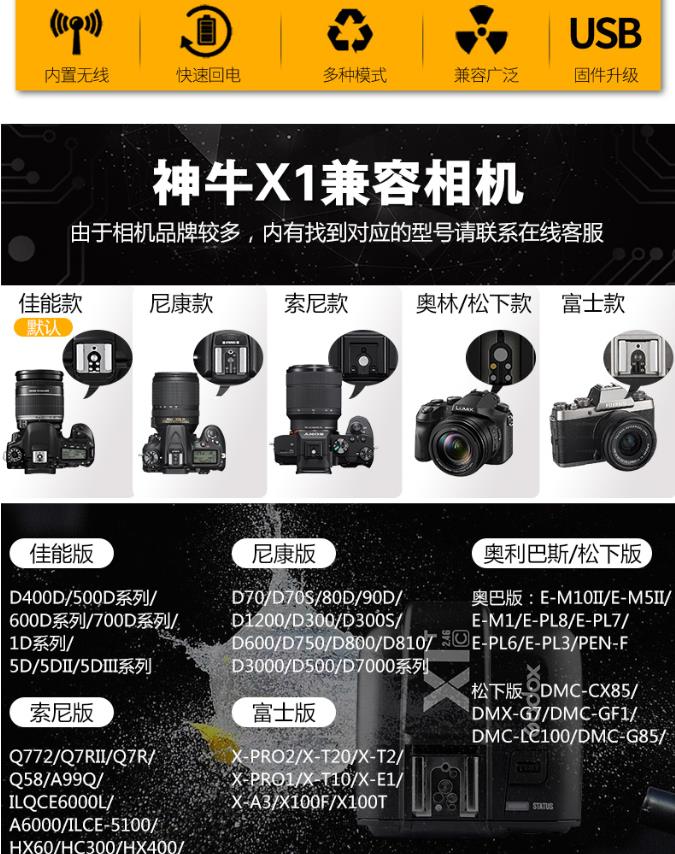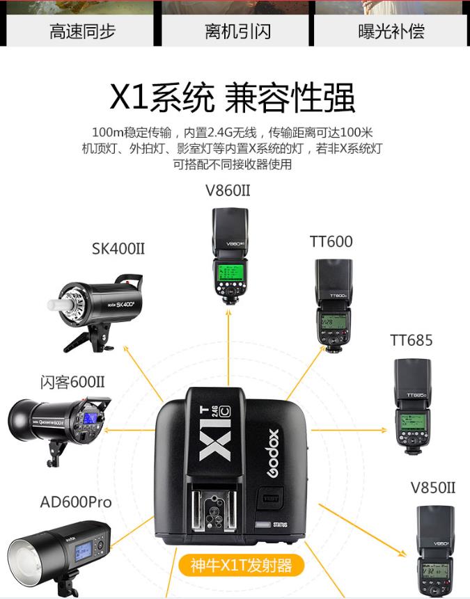 商品名称:神牛 X1T-S 索尼引闪器1/8000高速触发器 TTL发射器无线遥控器
