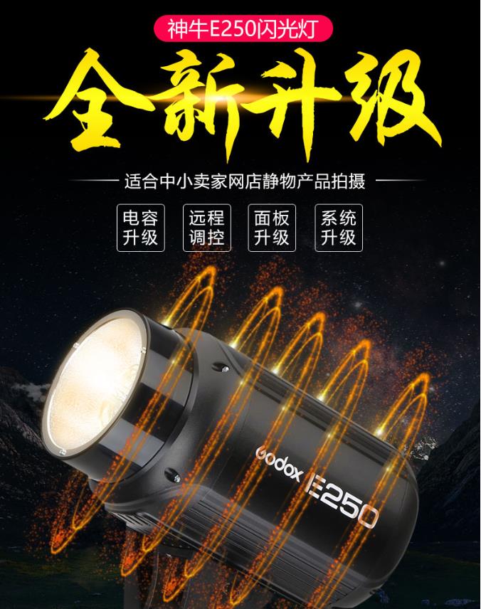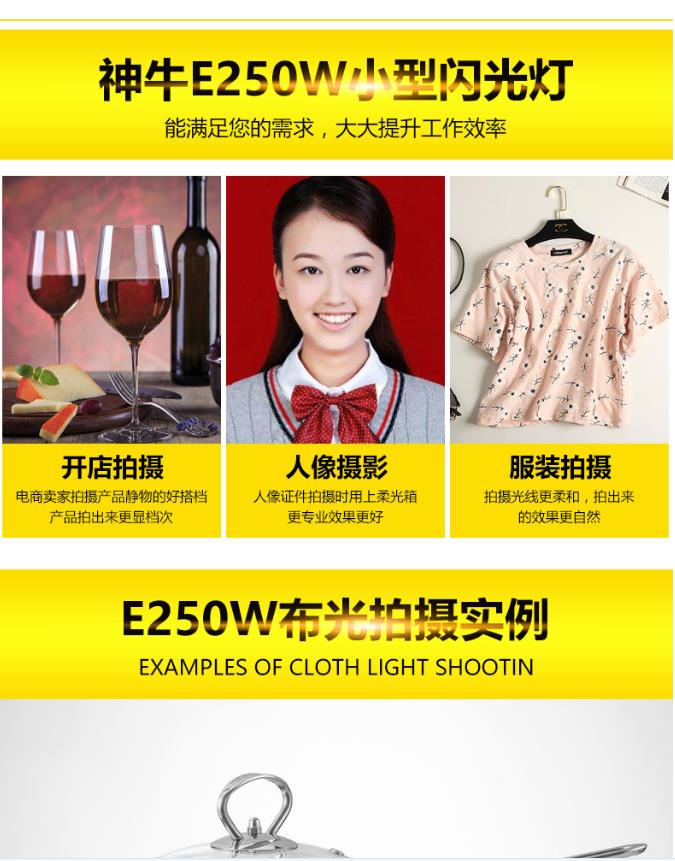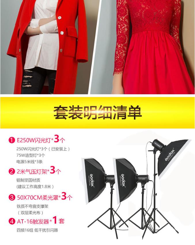 商品名称:神牛 GODOX E250 摄影棚小型摄影闪光灯套装 250W三灯套装 补光灯摄影柔光箱 三灯套装 小商品拍摄