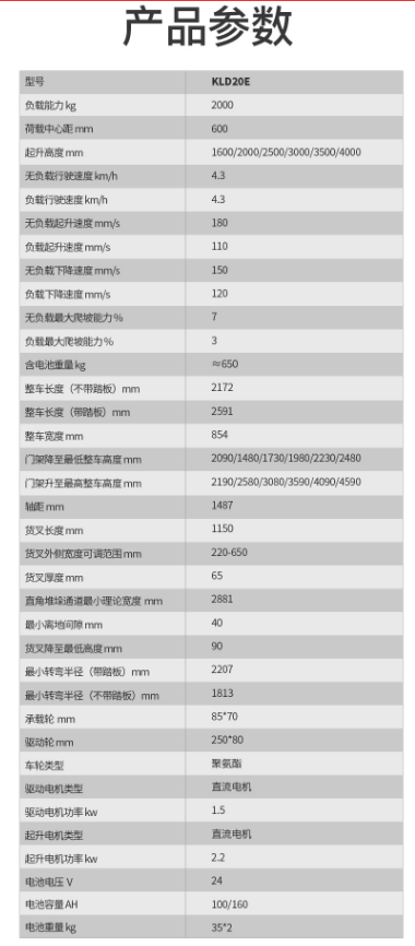 商品名称:箭车 JENLIFT KLD20-25EA 全电动叉车 2吨