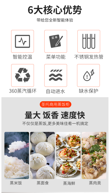 商品名称:圣托 SHENTOP STZ-D06 智能商用电脑蒸饭柜 6层 6盘单门