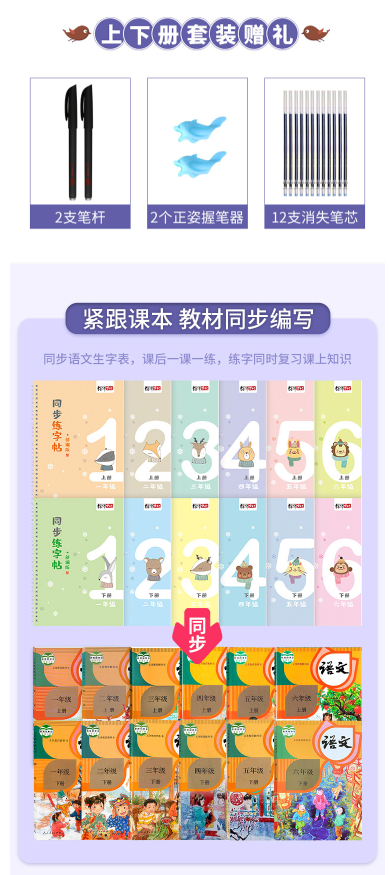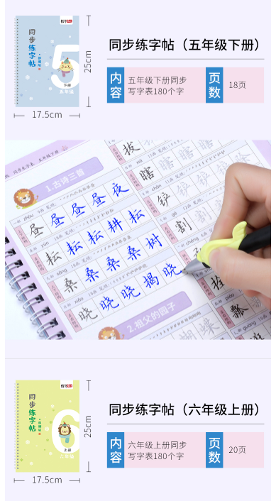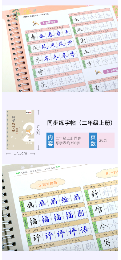 型号:小学生二年级 语文课本同步凹槽练字帖 2本 盒装