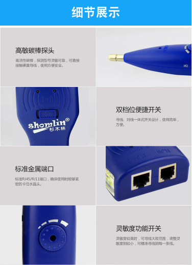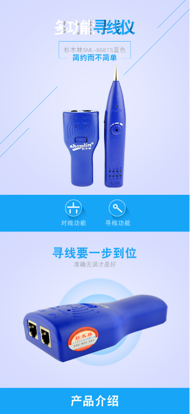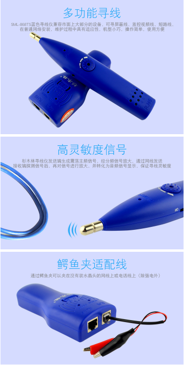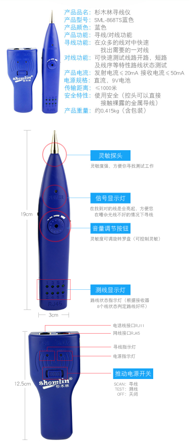 商品名称:杉木林 SML-868T-6 多功能网络电话寻线器 查线仪 网线电话线寻线蚁带电找线器巡线仪 蓝色特别版