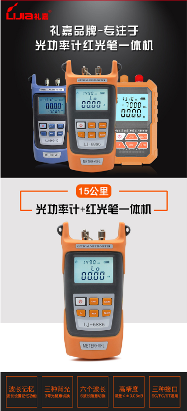 商品名称:礼嘉 LJ-6886 光功率计红光一体机红光源红光笔15公里光纤测试仪笔10MW红光源测试仪组合配电池 2018橙色新款