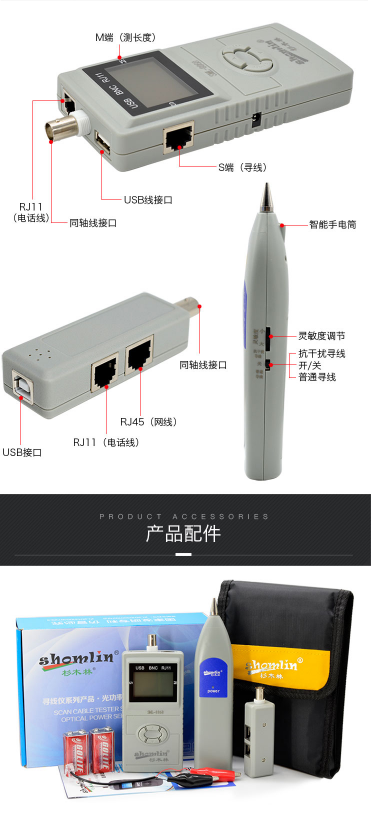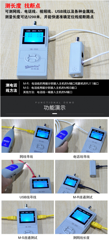 商品名称:杉木林 SML-8868 网络寻线器网线电话线监控线USB线寻线仪 线材长度测试仪对线器寻线机查线器 带LCD显示