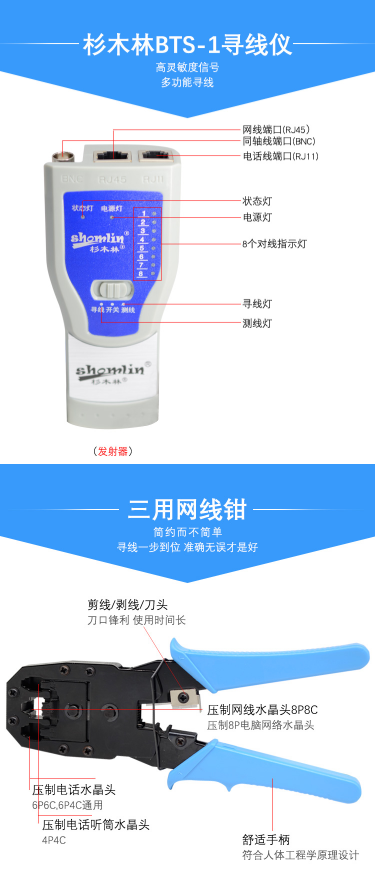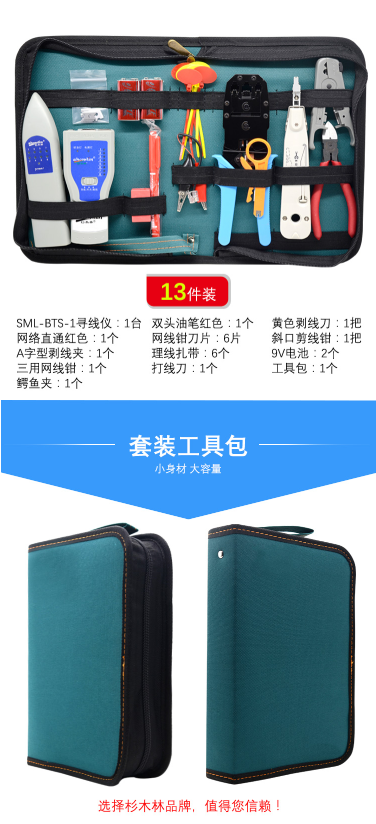 商品名称:杉木林 SML-8613T 多功能寻线仪套装 寻线器工具包 电脑查线器组合装网络测试仪网线钳工具箱 京东自营 13件
