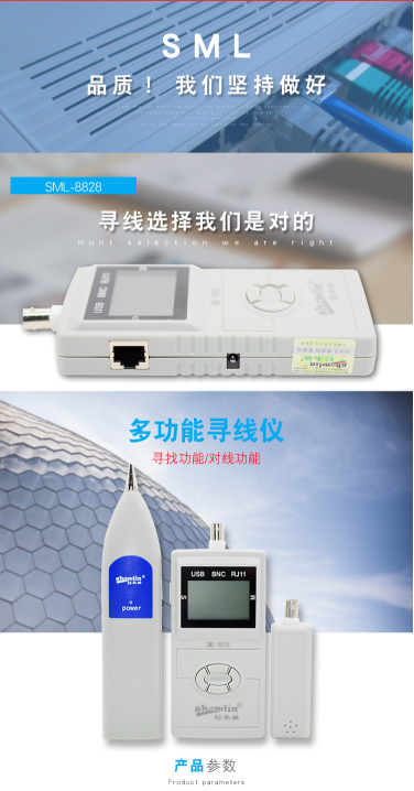 商品名称:杉木林 SML-8828 智能电话网络寻线仪网线电话线监控线USB线查线器 网线长度测试仪带LCD显示屏