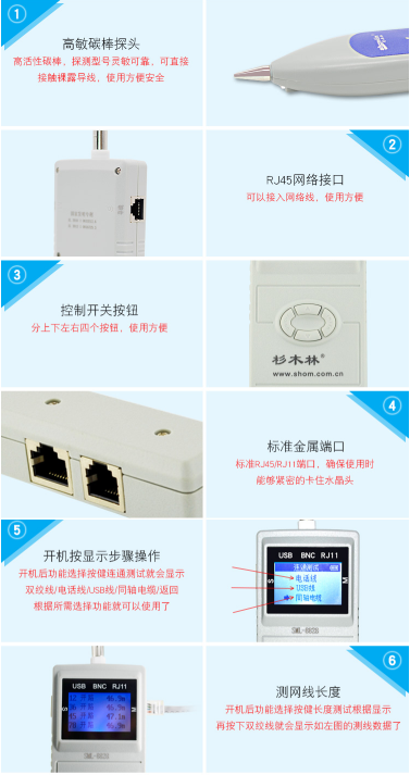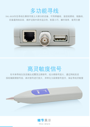 杉木林 SML-8828 智能电话网络寻线仪网线电话线监控线USB线查线器 网线长度测试仪带LCD显示屏