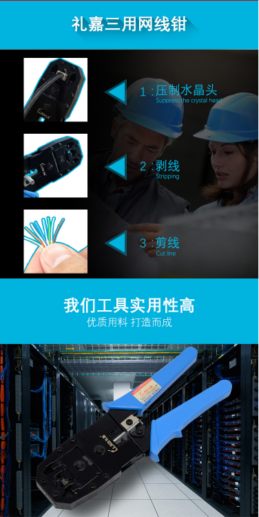 商品名称:礼嘉 LJ-3158 网线钳 三用网线钳子4P/6P/8P三用网络 RJ45压线钳 多功能套装工具 RJ11网线电话线水晶头压接钳