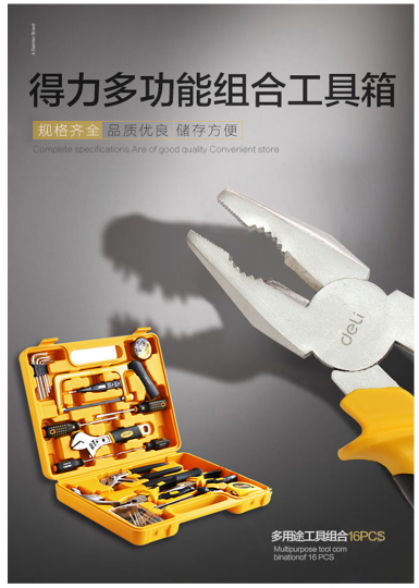 商品名称:得力 deli 3702多功能组合工具箱/工具套装25件套