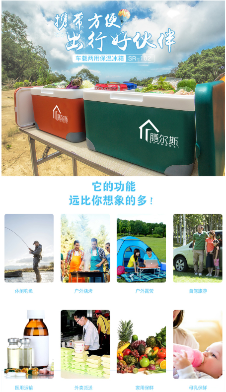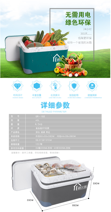 商品名称:膳尔斯 SHANERSI 保温箱冷藏箱 车载便携保鲜箱 背奶箱 海钓箱 家用户外自驾冷藏保鲜 送冰袋 40L 湖绿色