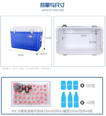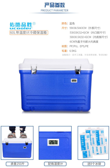 商品名称:佑酷品胜 60升 带温度大保温箱 外卖药品冷藏箱 车载户外野餐烧烤钓鱼箱 可坐人蓝色