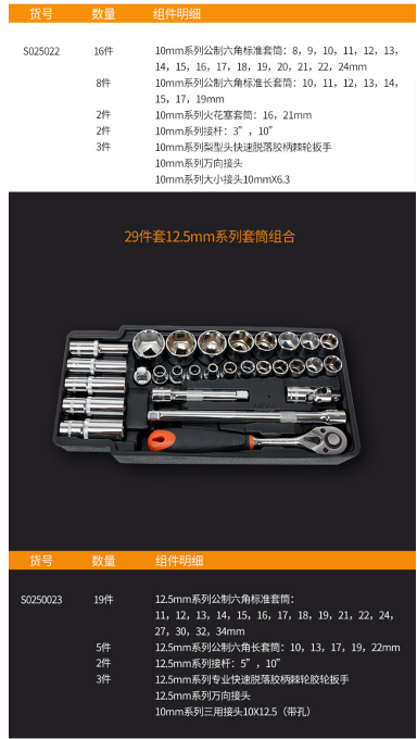 商品名称:钢盾 SHEFEIELD S025023 12.5MM系列 套筒组合二十九件套