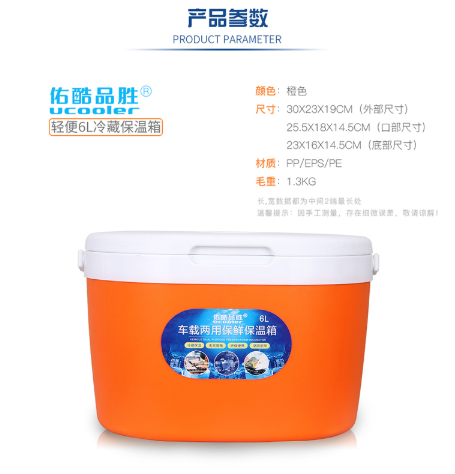 商品名称:佑酷品胜 6L保温箱冷藏箱 椭圆便携保温箱母乳保鲜箱血液医药保冷箱车载野餐烧烤箱橙色
